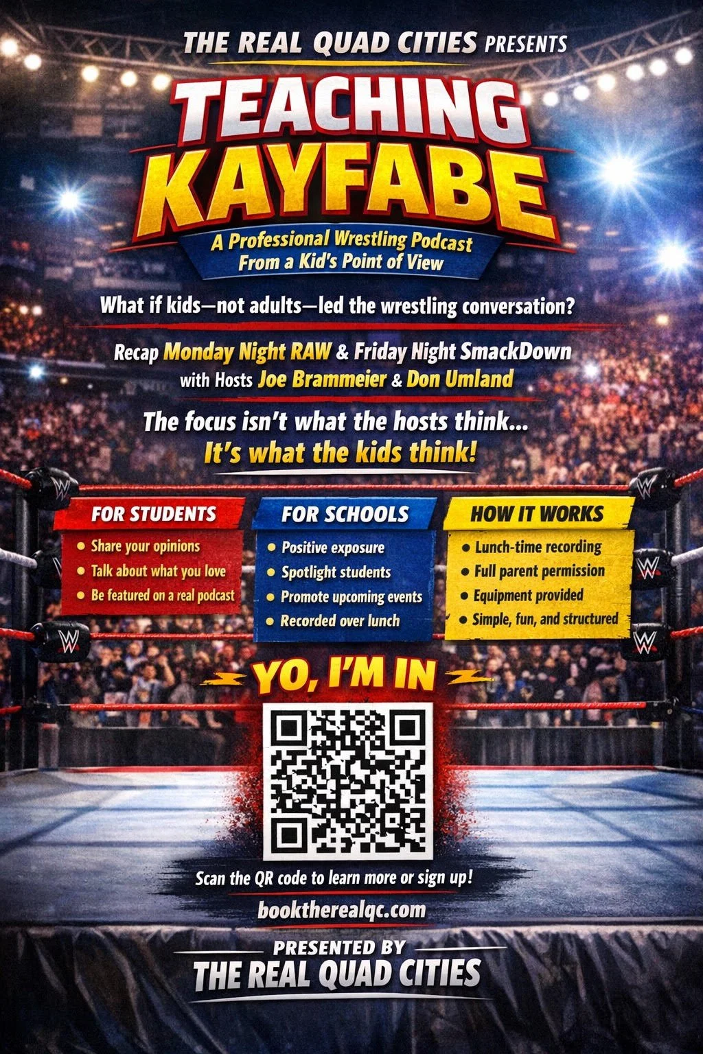 join us live! GET MERCH HERE! BOOK NOW With THE REAL QUAD CITIES NEW for Schools! A fun new segment with Hosts Joe Brammeier and Don Umland!